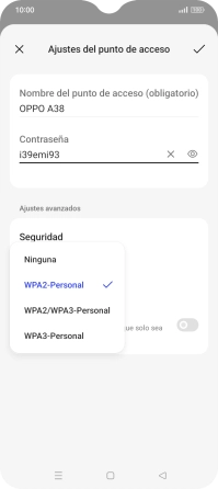 Pulsa WPA3-Personal para proteger la conexión wifi con una contraseña.