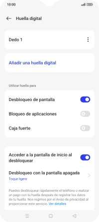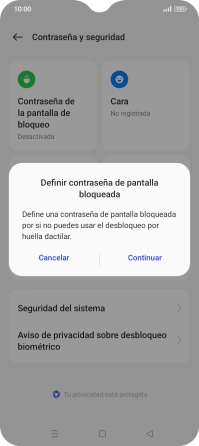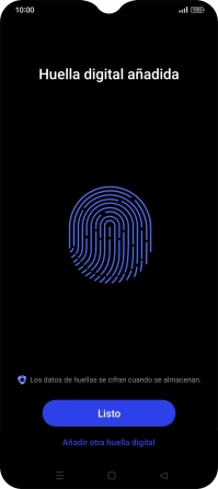Sigue las indicaciones de la pantalla para crear una huella digital como código de seguridad.