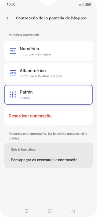 Pulsa Contraseña de la pantalla de bloqueo e introduce el código de seguridad extra que has creado anteriormente.