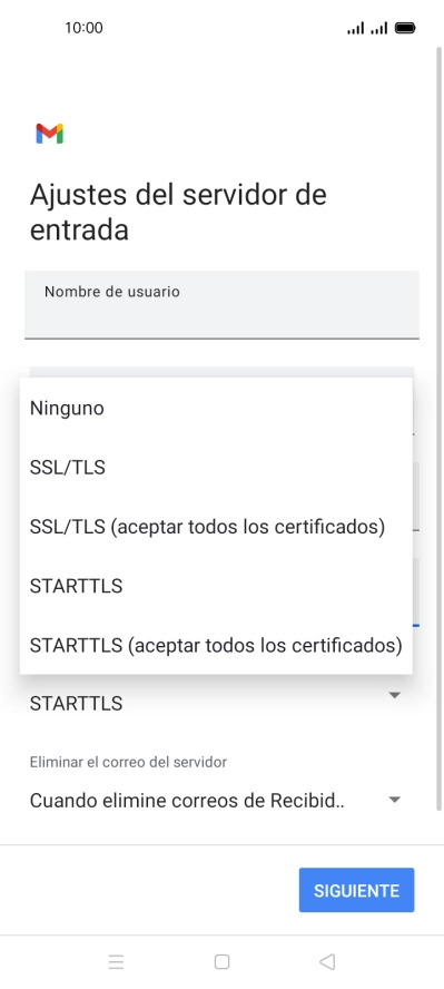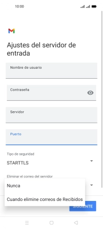 Pulsa Cuando elimine correos de Recibidos para eliminar los correos electrónicos del servidor cuando los borras del teléfono.