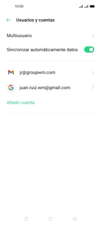 Pulsa Sincronizar correo de esta cuenta para activar la función.
