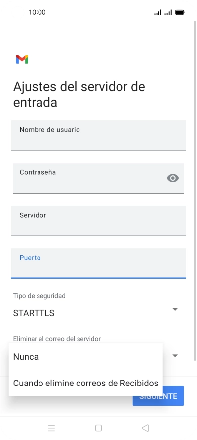 Pulsa Nunca para conservar los correos electrónicos en el servidor cuando los borras del teléfono.