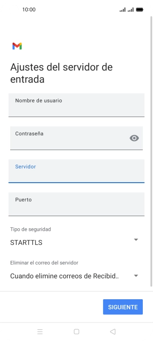 Pulsa en el campo bajo "Servidor" e introduce el nombre del servidor de correo de entrada de tu proveedor de correo.