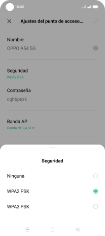 Pulsa WPA3 PSK para proteger la conexión wifi con una contraseña.