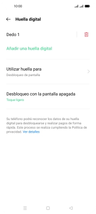 Pulsa el icono de eliminar junto a la huella digital que deseas borrar.