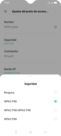 Pulsa WPA3 PSK para proteger la conexión wifi con una contraseña.