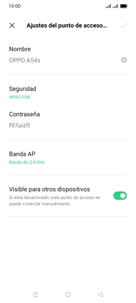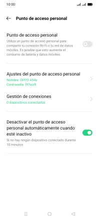 Pulsa el indicador junto a "Punto de acceso personal" para activar la función.