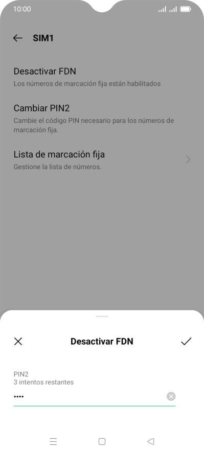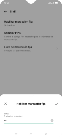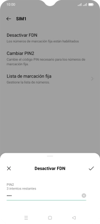 Introduce el código PIN2 y pulsa el icono de aceptar.