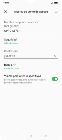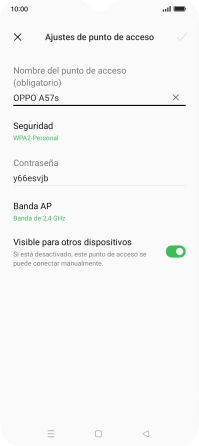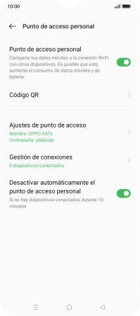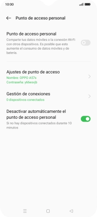 Pulsa el indicador junto a "Punto de acceso personal" para activar la función.