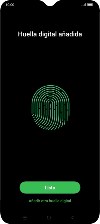 Sigue las indicaciones de la pantalla para crear una huella digital como código de seguridad.