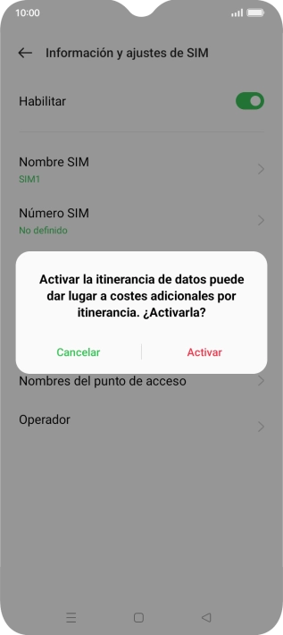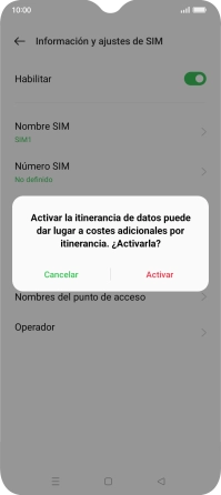 Pulsa el indicador junto a "Itinerancia de datos" para activar o desactivar la función.