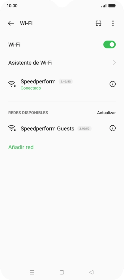 Si la red wifi está protegida con una contraseña, aparecerá un icono de candado junto al nombre de la red wifi. El administrador o el proveedor de red te puede proporcionar la contraseña.