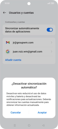 Pulsa el indicador junto a "Sincronizar automáticamente datos de aplicaciones" para activar o desactivar la función.