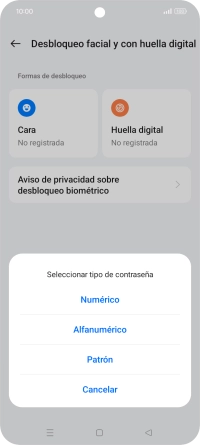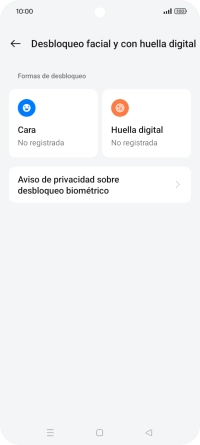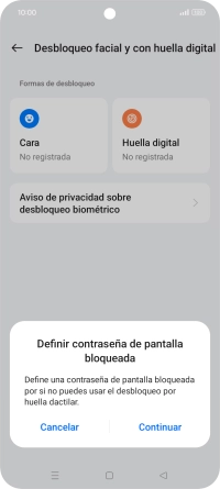 Sigue las indicaciones de la pantalla para crear una huella digital como código de seguridad.