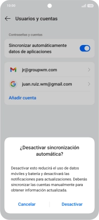 Pulsa el indicador junto a "Sincronizar automáticamente datos de aplicaciones" para activar o desactivar la función.