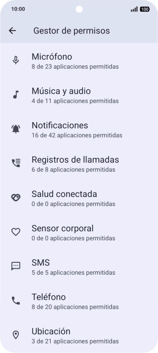 Pulsa Gestor de permisos.