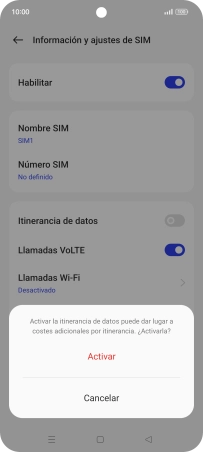 Pulsa el indicador junto a "Itinerancia de datos" para activar o desactivar la función.