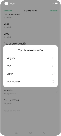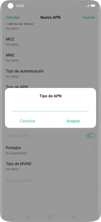 9. Introduce el tipo de APN