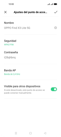 Pulsa el indicador junto a "Punto de acceso personal" para activar la función.