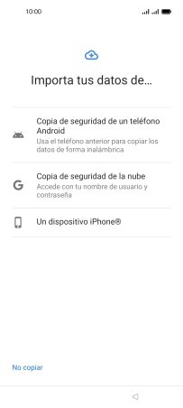 Pulsa el ajuste deseado y sigue las instrucciones de la pantalla para transferir el contenido del otro teléfono.