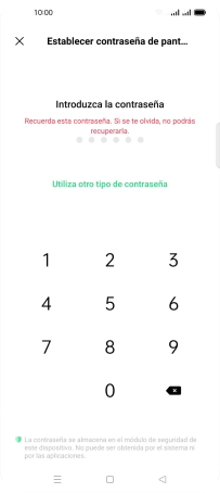 Pulsa el código de seguridad deseado y sigue las indicaciones de la pantalla para crear un código de seguridad del teléfono adicional.