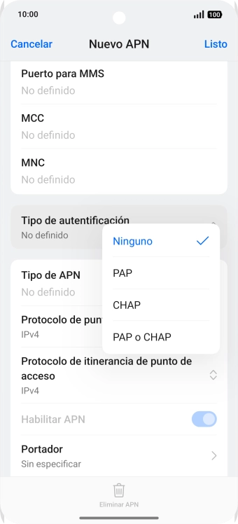 9. Selecciona el protocolo del punto de acceso (APN) en roaming