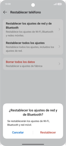Pulsa Restablecer los ajustes de red y de Bluetooth.