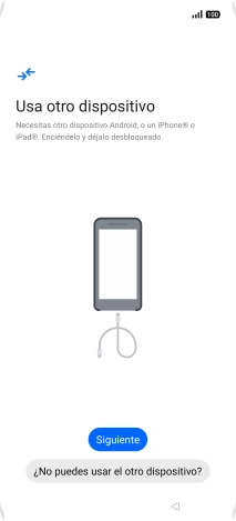 Si tienes un cable que pueda conectar ambos teléfonos, inserta el cable y sigue las instrucciones de la pantalla para transferir contenido a tu teléfono. Si no tienes un cable, pulsa ¿No tienes cable?.