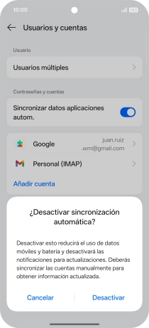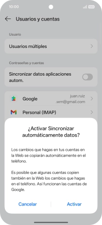 Pulsa el indicador junto a "Sincronizar datos aplicaciones autom." para activar o desactivar la función.