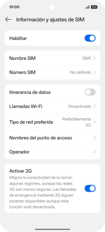 Pulsa en el campo junto a la conexión de datos para activarla.