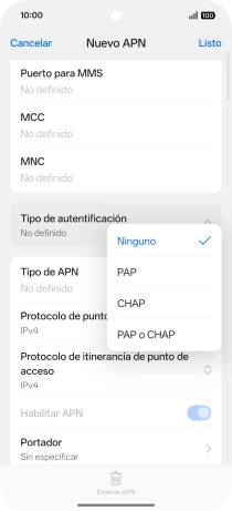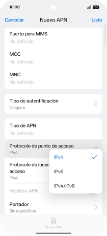 9. Selecciona el protocolo del punto de acceso (APN) en roaming