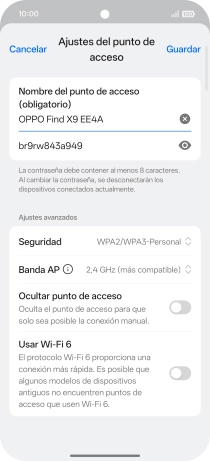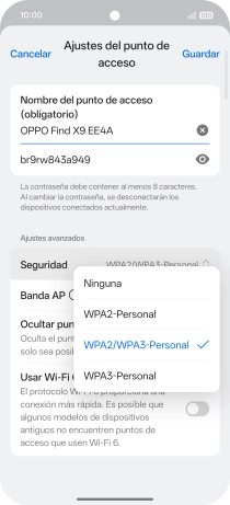 Pulsa WPA3-Personal para proteger la conexión wifi con una contraseña.