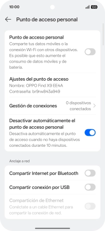 Pulsa el indicador junto a "Punto de acceso personal" para activar la función.