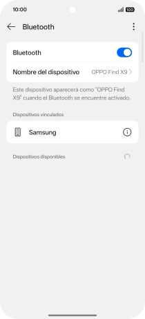 Pulsa el indicador junto a "Bluetooth" para activar la función.