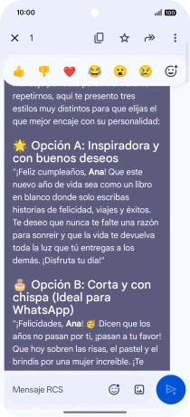 Pulsa la propuesta de texto de Gemini durante unos instantes. Sigue las indicaciones de la pantalla para utilizar el texto propuesto.