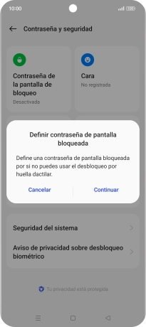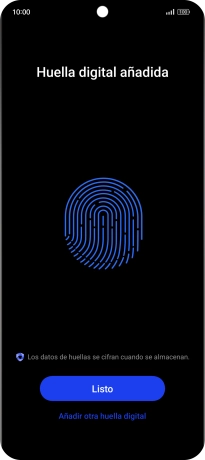 Sigue las indicaciones de la pantalla para crear una huella digital como código de seguridad.