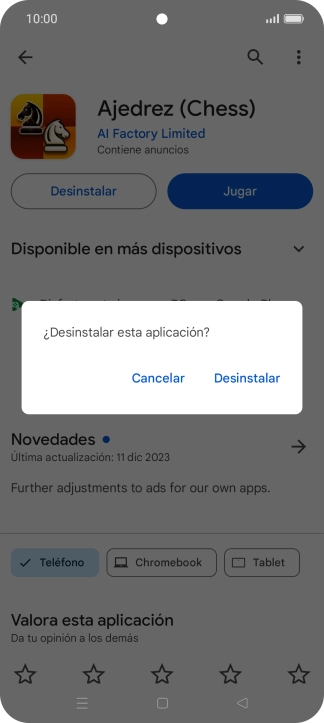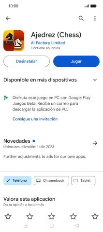 Para poder instalar apps, debe haber suficiente espacio en la memoria.