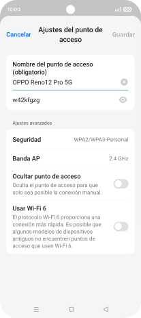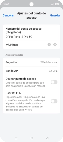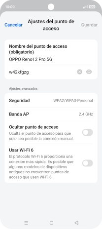 Pulsa en el campo bajo "Nombre del punto de acceso (obligatorio)" e introduce el nombre de la conexión wifi.