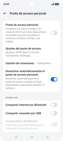 Pulsa el indicador junto a "Punto de acceso personal" para activar la función.