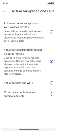 Si activas la actualización de apps con datos limitados a través de la red móvil, se actualizarán tus apps de forma automática utilizando la red móvil cuando la red wifi no esté al alcance.