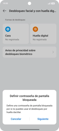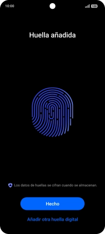 Sigue las indicaciones de la pantalla para crear una huella digital como código de seguridad.
