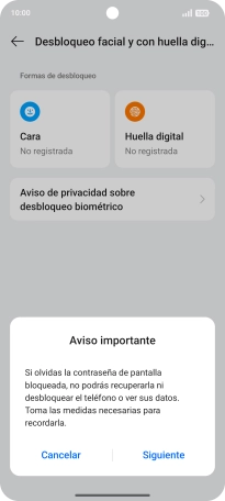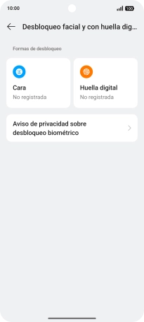 Pulsa Desbloqueo facial y con huella digital.