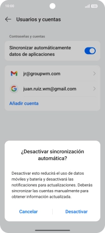 Pulsa el indicador junto a "Sincronizar automáticamente datos de aplicaciones" para activar o desactivar la función.
