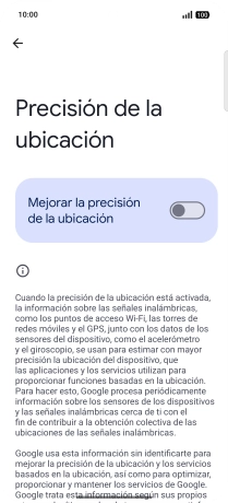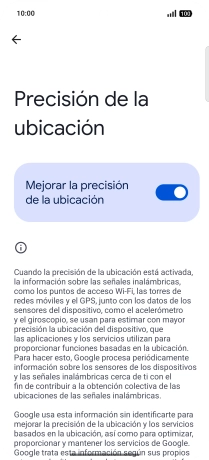 Si pulsas el indicador junto a "Mejorar la precisión de la ubicación" para desactivar la función, el teléfono podrá encontrar tu posición exacta con ayuda de los satélites GPS, pero le llevará más tiempo ya que no tiene acceso a informaciones complementarias de la red móvil o una red wifi cercana.