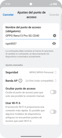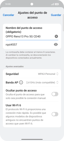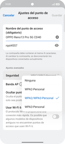 Pulsa WPA3-Personal para proteger la conexión wifi con una contraseña.