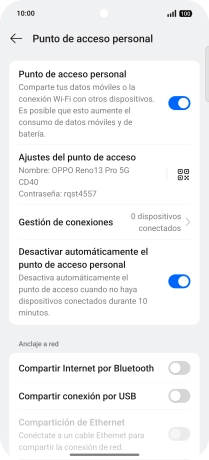 Pulsa el indicador junto a "Punto de acceso personal" para activar la función.
