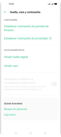 Pulsa Huella, cara y contraseña.