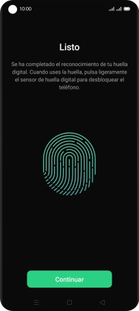 Sigue las indicaciones de la pantalla para crear una huella digital como código de seguridad.
