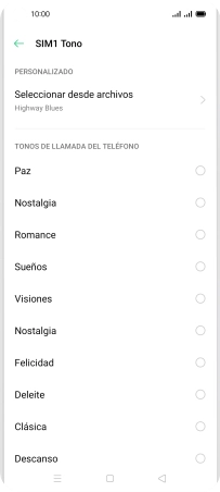 Al encontrar un timbre de llamada de tu gusto, pulsa la tecla de retroceso.