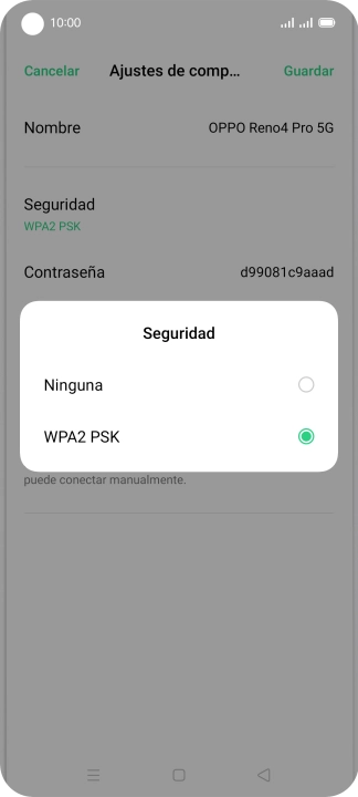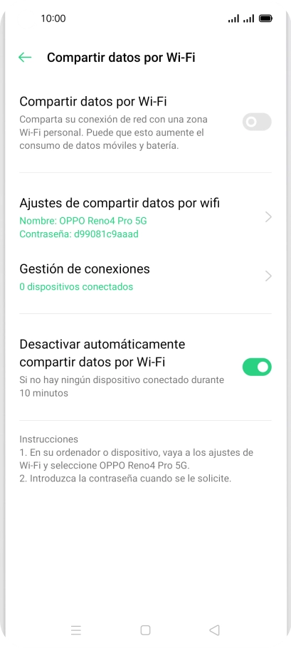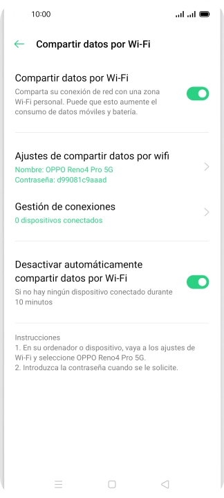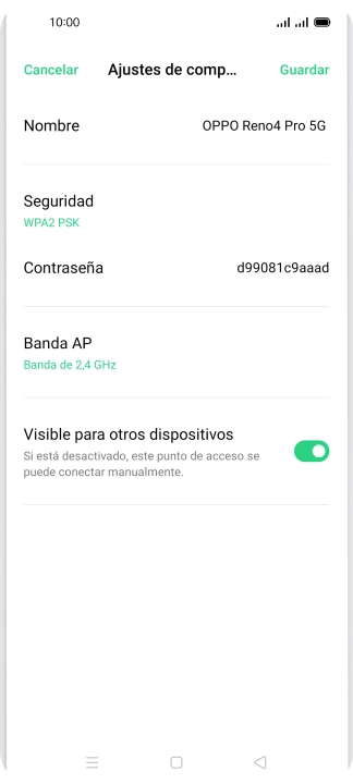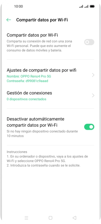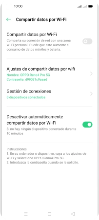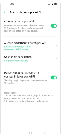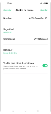 No puedo utilizar mi OPPO Reno4 Pro 5G Android 10.0 como conexión wifi